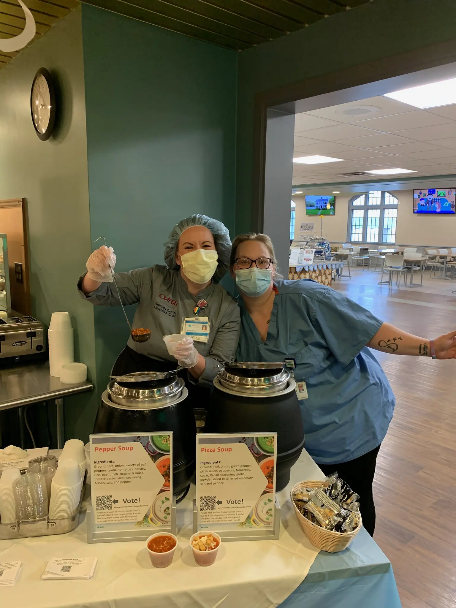 For $2, customers received two four-ounce portions of the featured soups, a fountain beverage, and a chance to vote for their favorite soup via a QR code – all soups homemade by Cura Hospitality Lead Cook Jennifer Ciotti. Customers enjoyed everything from pizza and pepper soups to black bean soup or the easy chicken tortilla! The winning soup was the Dill Pickle Soup submitted by Domenica Babo, MS, RDN, LDN, and SVH Healthy Food Center Manager!
