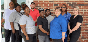 The Cura team was proudly featured on the front page of the Mississippi State Hospital (MSH) newsletter! Cura serves approximately 1,875 meals a day to patients and residents as well as a wide range of breakfast and lunch selections for staff – a huge perk and time saver! Cura General Manager Jeremy Allen was recognized for improving quality and consistency in meals, and for meeting monthly with clients to address concerns or make adjustments to best meet the needs of patients and residents. Jeremy also works to improve communication between MSH and Cura as well as encourages MSH staff to utilize the suggestion box – breakfast pizza and English muffins are now on the menu! Cura supports many activities on campus, including events such as the Farmer Jim Neal Golf Tournament, the Serendipity Art Show, Legislator campus visits, and board meetings. Thank you to Jeremy and the team pictured here for making a difference: