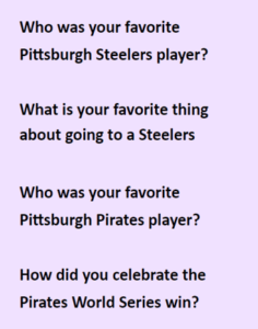 Cura is proud to be a part of the dining innovation with Providence Point, incorporating Connections that offers multiple tools to enhance the lives of memory impaired residents. Conversation Starters, one of the most popular tools, helps dining staff caring for memory-impaired residents generate a meaningful conversation. The cards are designed as a series of 5-by-8-inch index cards of full-color nostalgic pictures on one side and questions on the other. According to Cura Food Service Director Cheryl Torre-Rastetter who manages the Providence Point dining team for this continuing care retirement community in Pittsburgh, PA, “My supervisor Megan Hulick went a step further and created Pittsburgh Pirates Baseball and Pittsburgh Steelers Football conversation starters.” Dining team members ask questions about the sports teams, what is the significance of the colors black and gold, the terrible towel and favorite players. “They are a huge hit with residents and staff. We have many younger people who work with us and it has encouraged residents to share their life experiences with them.”
