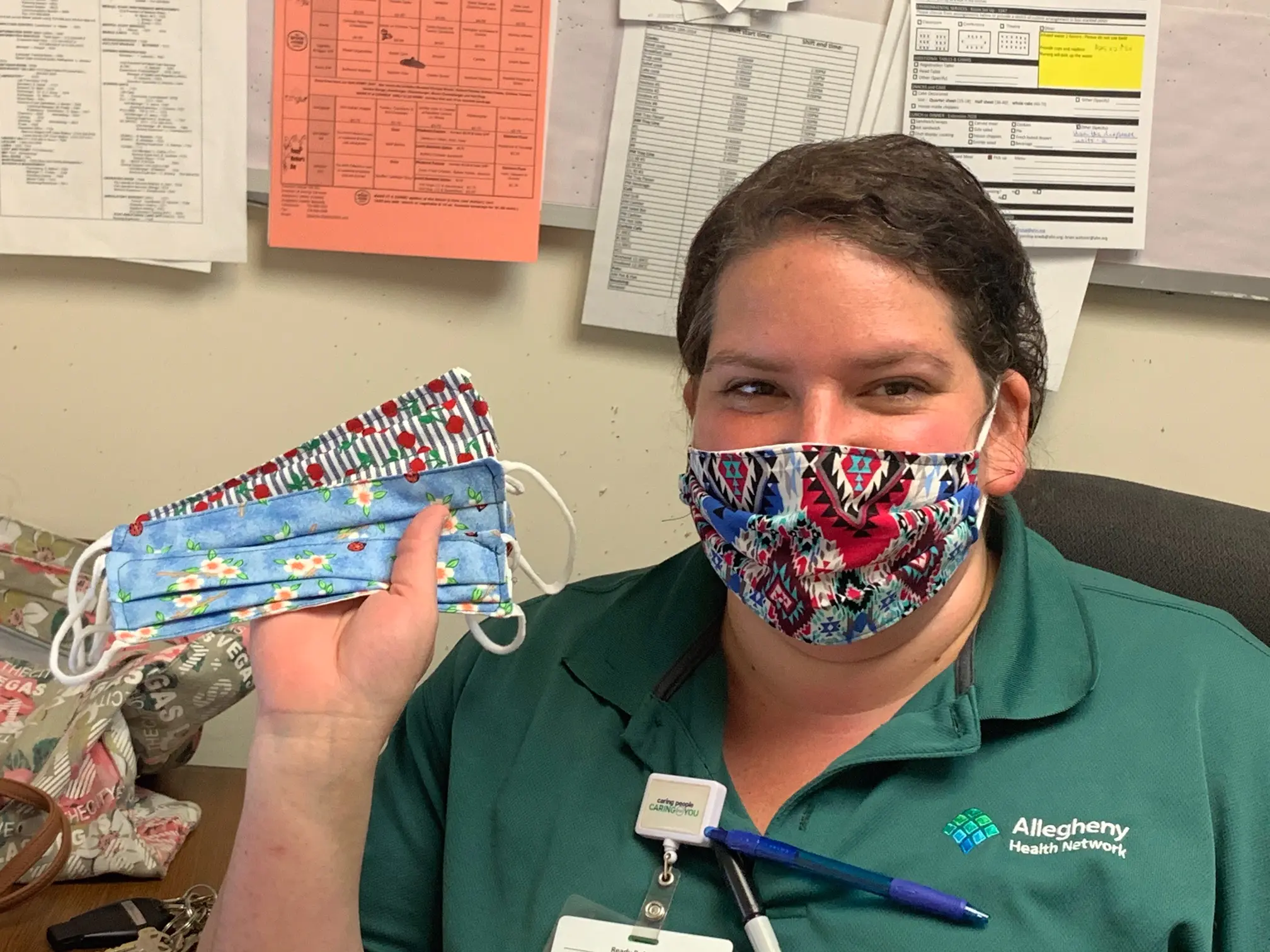 In other mask news, Mary Coward, a supervisor at Allegheny Health Network at Allegheny Hospital in Natrona Heights, PA, made 100 masks for the dining team.