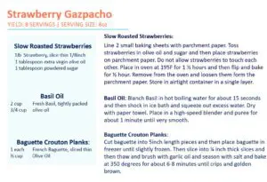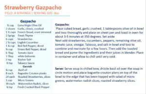 This isn’t your typical gazpacho. Traditionally a chilled Andalusian soup of tomatoes, cucumbers, and peppers, Chef Clark’s version embraces the essence of spring with sweet, ripe strawberries. It’s a stunning reflection of our So Good program, highlighting whole seasonal foods, and our Waste Nothing initiative, using leftover bread to create a rich, flavorful base.