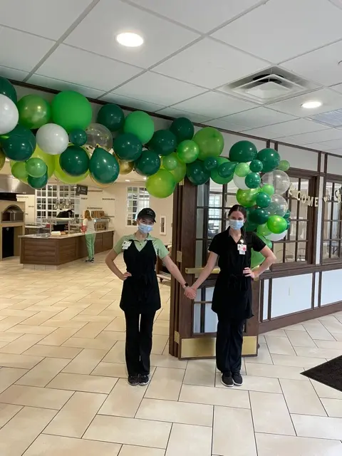 Alyssa and other student dining workers continue to make a difference in the lives of the residents, helping them to remain positive and giving them cheer during this challenging time. They are drawing pictures on take-out containers and sending messages of love and “miss you” to the residents.