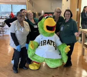 AHN Allegheny Valley Hospital recently hosted its Guest Chef event on Wednesday, March 11, featuring a fun surprise visit from the Pirate Parrot to help kick off excitement for baseball season. Over lunchtime, guests enjoyed a three‑course, chef‑crafted meal made with locally sourced ingredients — including foraged mushrooms, asparagus, and potatoes — prepared by Chefs Zach Barensfeld (AHN Allegheny General) and John Phelan (AHN Forbes).