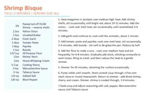 Achieving the desired consistency of the bisque requires the gradual incorporation of flour and stock. This step facilitates the harmonization of flavors and the development of a luscious texture. Patience is crucial as the soup simmers, allowing the ingredients to meld together and reach their full potential. Finally, succulent shrimp and velvety cream are added to elevate the bisque to its consummate form, ready to be savored and enjoyed.